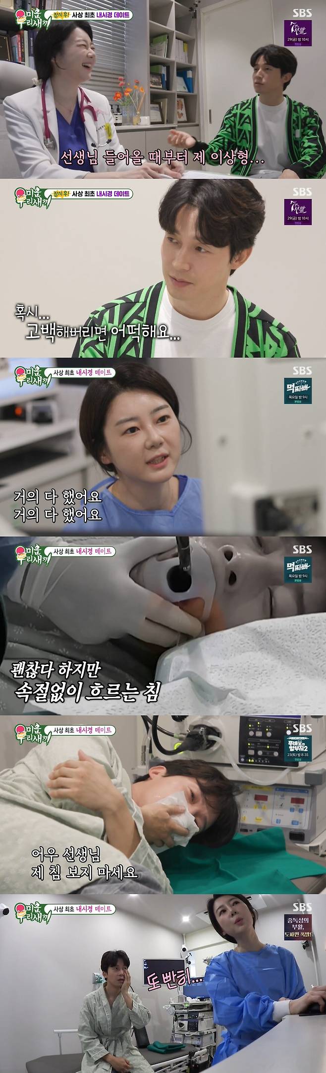 비수면 내시경을 하게 된 허경환은 "침을 그대로 흘리라는 말을 듣고 크게 당황했습니다. 좋은 모습을 보이려고 선택한 비수면 내시경이었지만, 오히려 더 못 볼 꼴을 보이게 된 것입니다. 허경환은 "침 흘리면 가려주면 안 되냐. (침 흘린다는) 그런 말은 인터넷에 없었다"며 안절부절못했습니다.
